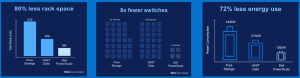 Hệ thống PowerScale F710 mang lại hiệu suất vượt trội với hiệu suất đáng kinh ngạc. Trong môi trường tham chiếu hỗ trợ hơn 16.000 GPU, PowerScale đạt được mật độ này chỉ trong 168 tủ rack. 1 Điều này cho phép bạn mở rộng quy mô AI trong điều kiện hạn chế về điện năng và không gian, sử dụng ít hơn tới 88% số bộ chuyển mạch backend và tiêu thụ ít hơn tới 72% điện năng so với các giải pháp thay thế. 1 Kết quả là cơ sở hạ tầng được đơn giản hóa, chi phí vận hành thấp hơn và một cách thông minh hơn để tối đa hóa từng đô la chi cho tài nguyên GPU.