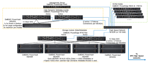 Mô-đun siêu dữ liệu nhu cầu cao tùy chọn đã được sử dụng, nhưng với một mảng ME4024 duy nhất, ngay cả khi cấu hình lớn và được thử nghiệm trong công việc này được chỉ định là có hai ME4024. Lý do sử dụng mô-đun siêu dữ liệu đó là vì hiện tại các nút NVMe này chỉ được sử dụng làm mục tiêu Lưu trữ cho dữ liệu. Tuy nhiên, các nút có thể được sử dụng để lưu trữ dữ liệu và siêu dữ liệu, hoặc thậm chí như một giải pháp thay thế nhanh cho mô-đun siêu dữ liệu có nhu cầu cao, nếu nhu cầu siêu dữ liệu cực cao đòi hỏi. Những cấu hình đó không được kiểm tra như một phần của công việc này.